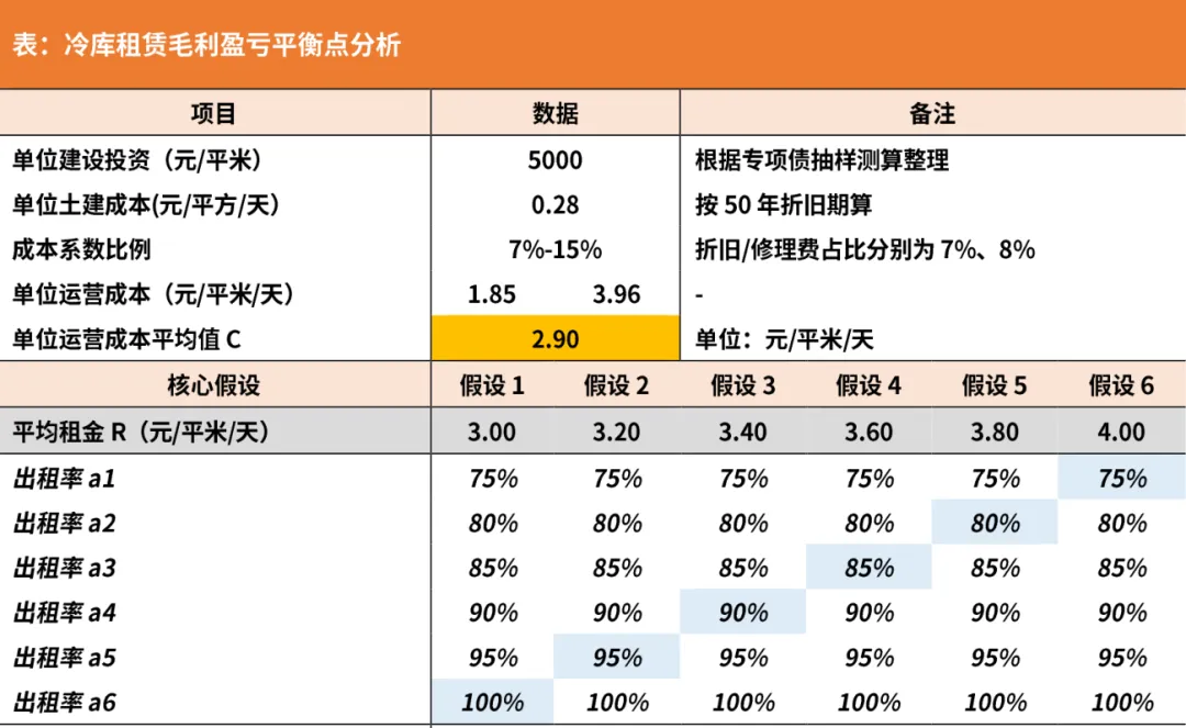 3. 冷库租赁的毛利盈亏平衡测算