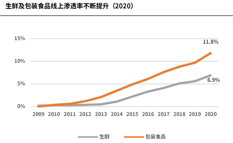 根据Euromonitor数据显示,中国生鲜和包装食品线上渗透率不断提升,人民日益增长的生鲜和即食食品的需求驱动冷链物流行业蓬勃发展,冷链物流需要从上游产地、中游仓储运输、中转分拣、下游配送等方面全面建设。