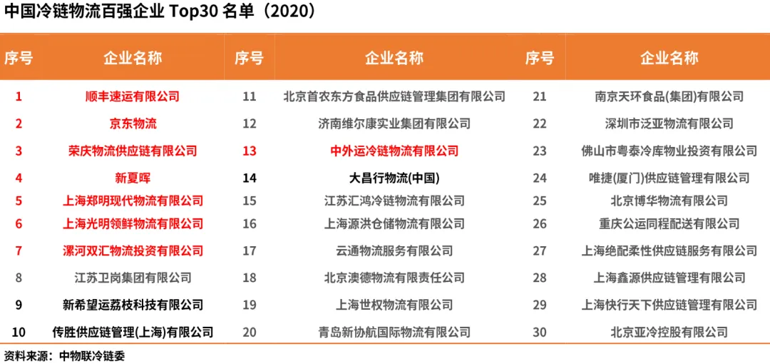 2.冷链收入前30名重点企业榜单