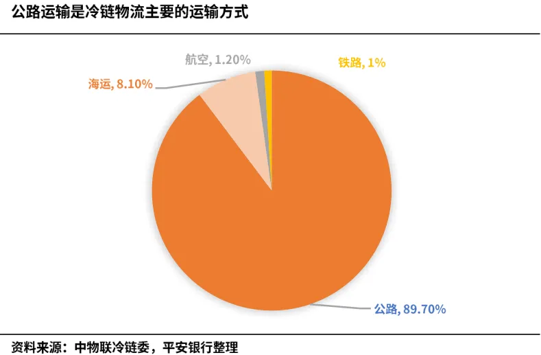 根据中物联冷链委数据及预测,2020年冷链物流服务的市场规模3831亿人民币,五年复合增速为12%。其中运输、仓储和其他服务环节价值链占比分别为40%、30%、30%;而公路运输占据冷链物流运输环节的90%,是冷链物流最重要的运输方式。