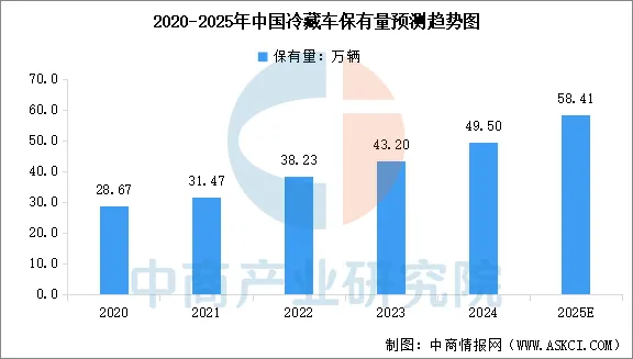 中国冷藏车保有量呈现逐年增长趋势。中商产业研究院发布的《2025-2030年中国冷链物流行业深度调研及投资前景预测报告》显示,2024年全国冷藏车市场保有量达到49.50万辆,同比增长14.58%。截至2025年三季度末,全国冷藏车保有量达56.35万辆,同比增长19.05%。中商产业研究院分析师预测,2025年全年中国冷藏车市场保有量将达到58.41万辆。